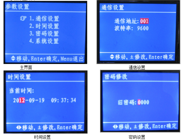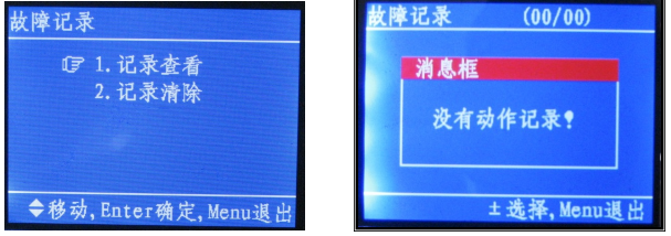 进入定值界面后通过“↑”键、“↓”键进行翻页,按“确定”键进入调整状态,在调整状态下,通过“↑”键、“↓”键调整参数。再次按“确定”键进入下一相。按“菜单”键返回。 若进入定值修改,定值修改界面的密码为:1234(初始值)。密码可以通过后面的菜单进行修改。 5.3故障记录界面 查看发的历史记录