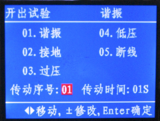 系统设置 系统额定电压根据现场实际电压进行设置;电压校准系数是指实际输入电压与显示电压有区别时,进行微调,调整公式为:调整系数=(实际输入电压/显示电压)*原调整系数。 5.5开出试验界面